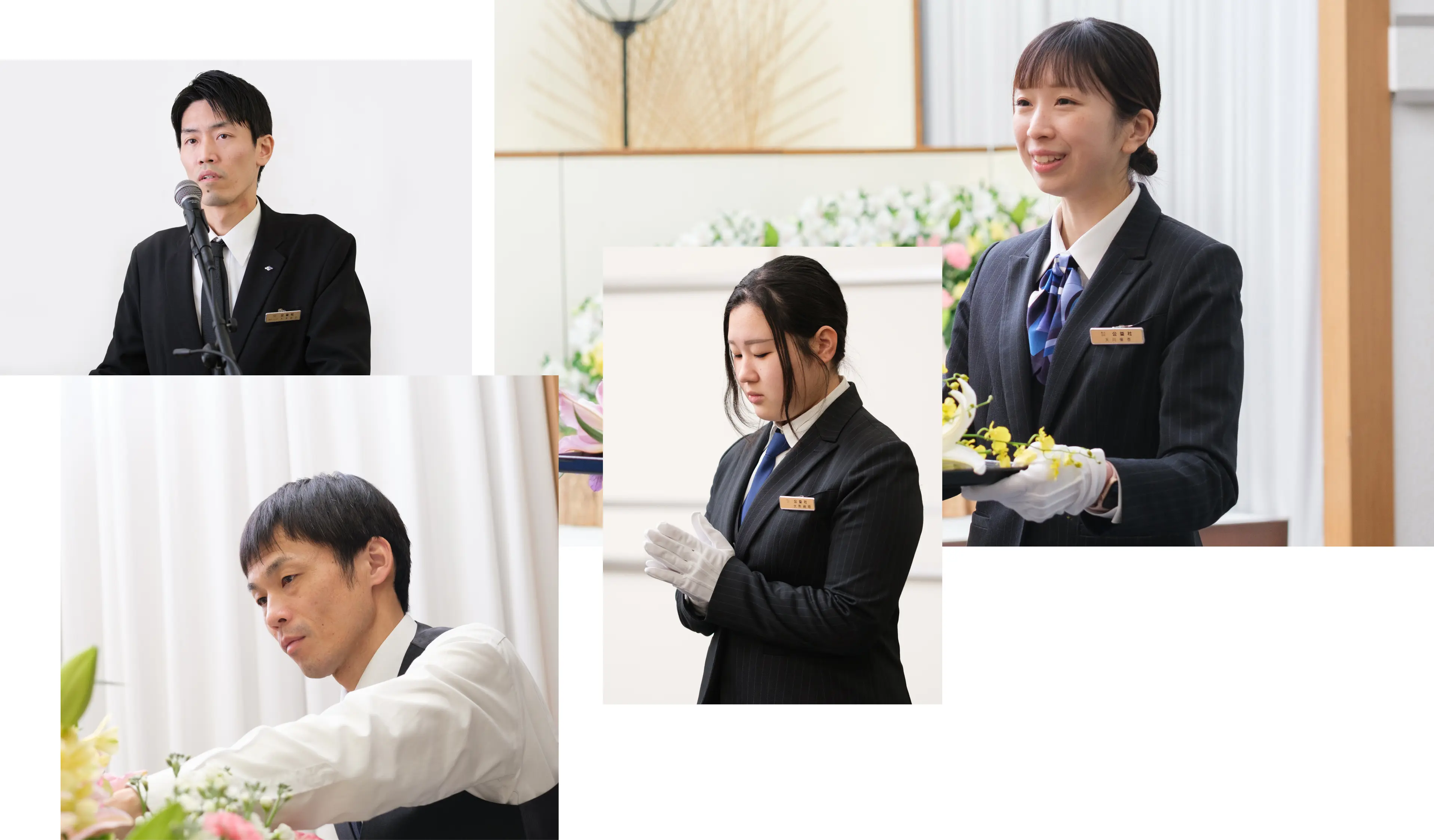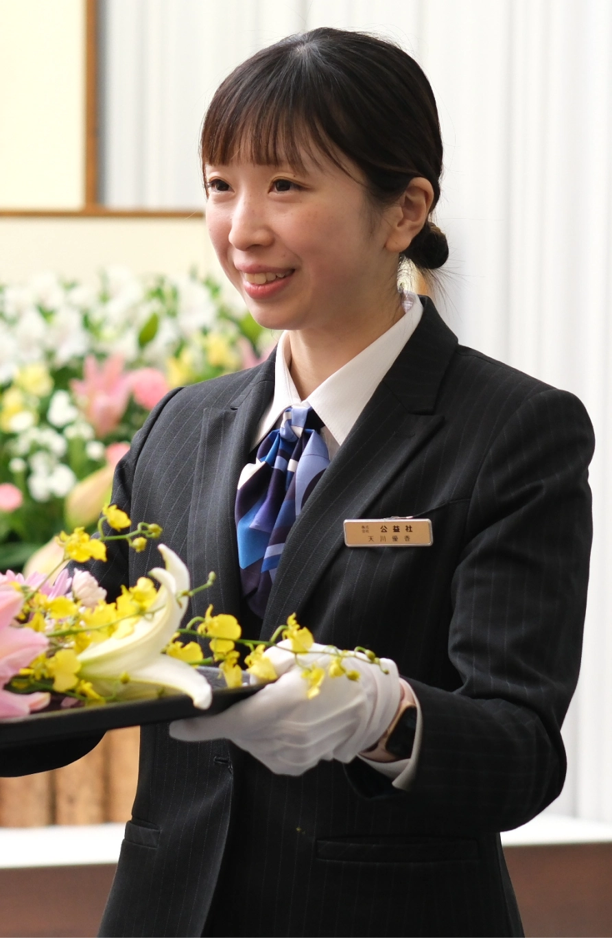 - A3. ご家族の方から「ありがとう」と言ってもらえた時です。大変な事もありますが、無事に式を終えられた時この仕事をしてよかったなと感じます。