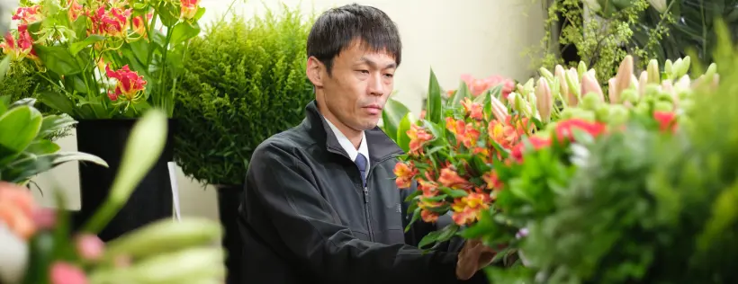 生花飾付というと女性のイメージがあり男性は働きづらいと感じている方もいらっしゃるかもしれませんが、そんなことはありません。