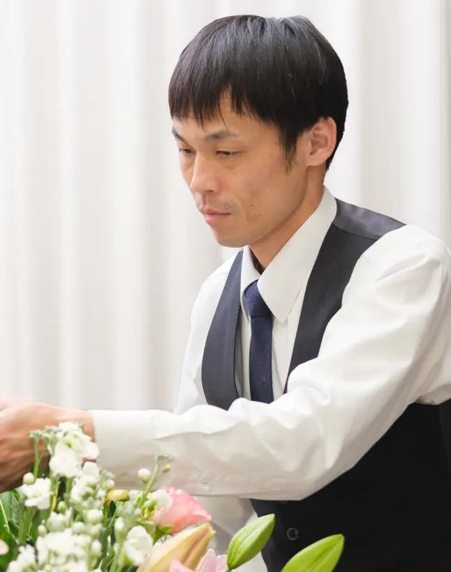 ご葬儀・法要における生花装飾を通して、お花で想いを届けるお手伝いをする仕事です。祭壇の飾付やお供えの生花で、亡くなられた方への想いをお花で表現していきます。